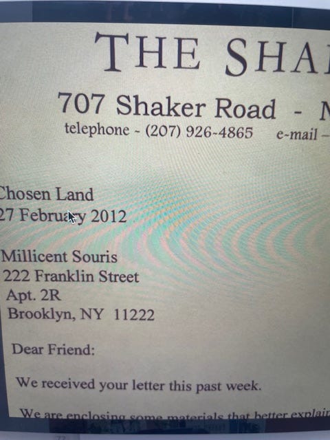 In response, they sent me a book, Precepts of Mother Ann Lee by The Elders, and a letter outlining what I needed to bring to the table to become a Shaker: a devotion to God and willingness to be celibate, along with no debt and a desire to work hard. My intention then wasn’t to join them. I am a fan of their furniture, spaces, inventions, egalitarianism, and food. I respect the Shakers too much to live with them under a ruse, I didn’t follow up. I’m not a religious person, but the Shakers are definitely a religious group, born from the Quakers in England, called the shaking Quakers for how they danced during prayer. Mother Ann Lee led them, considered to be Christ in female form, they moved to the colonies to fulfill their religious destiny, according to her vision.